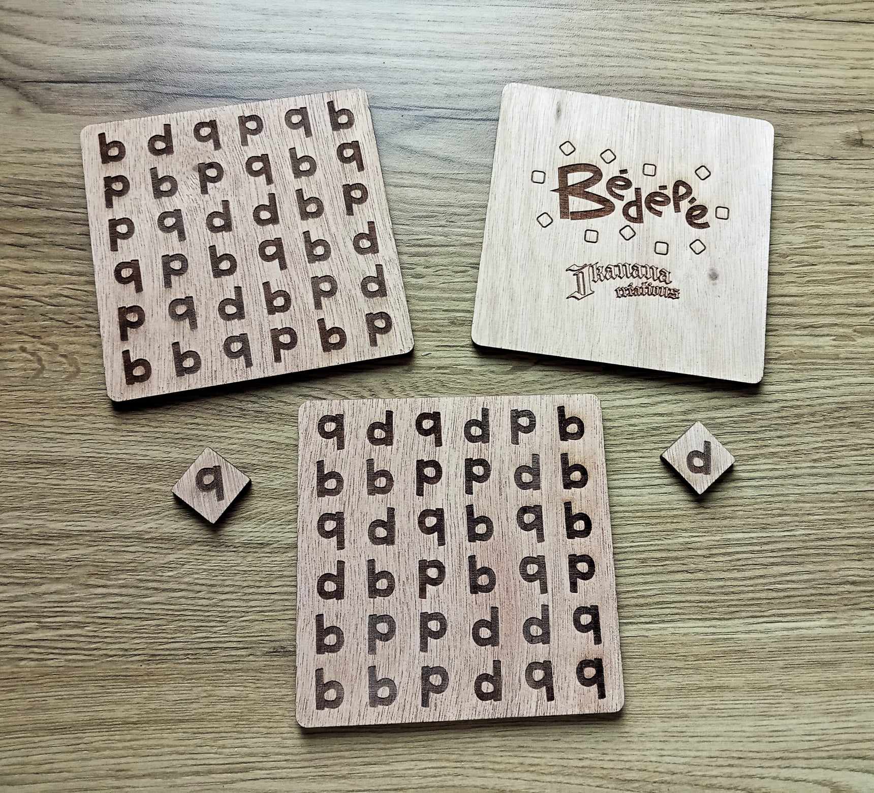 Bédépé es un juego en el que hace falta buscar las letras correspondientes sobre los tableros según la letra seleccionada de la ficha.