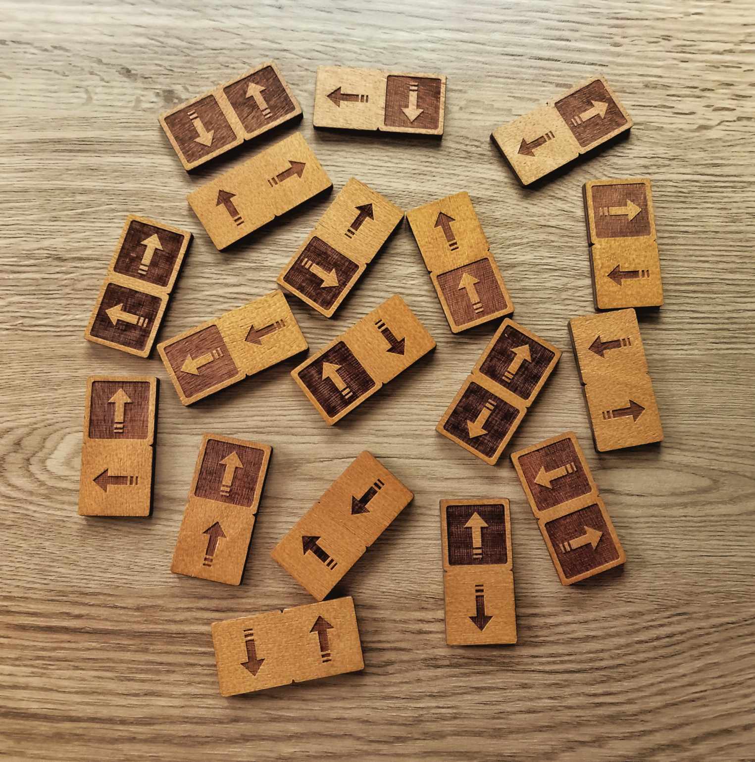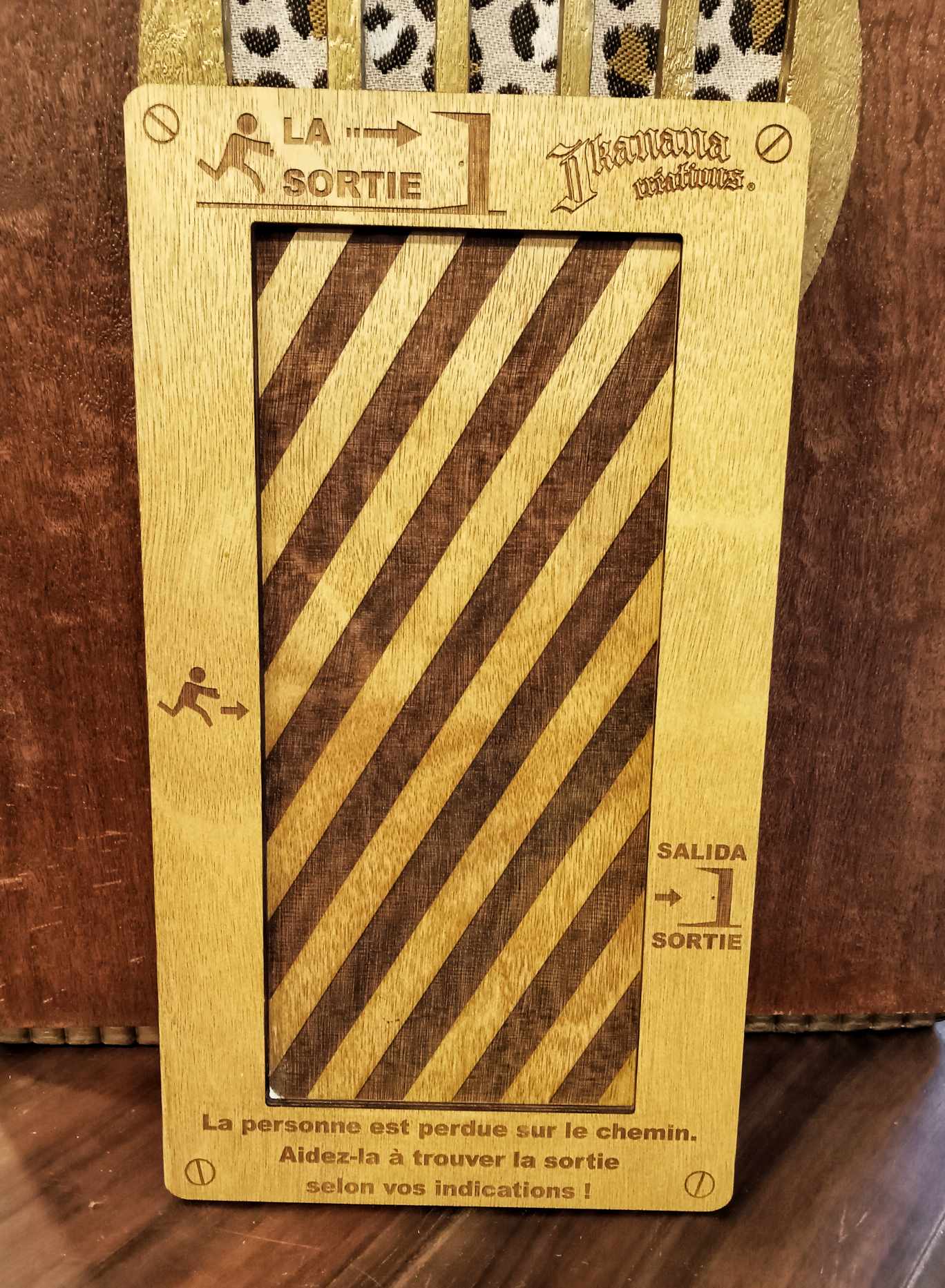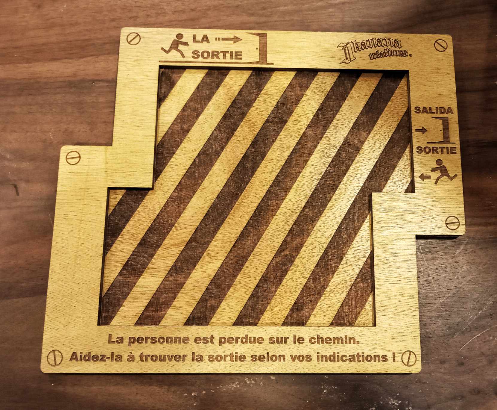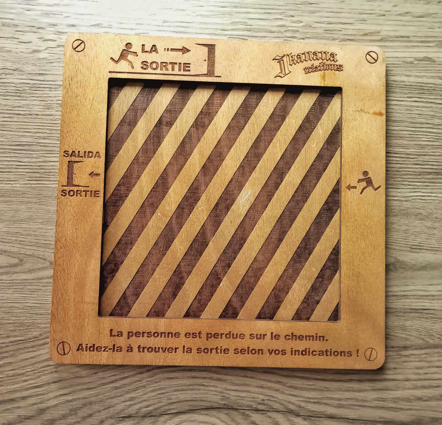 Le jeu contient un tableau et 18 pièces en bois et nous avons créé plusieurs tableaux différents avec ses correspondantes pièces à acquérir si vous avez réussi finir un d’eux.