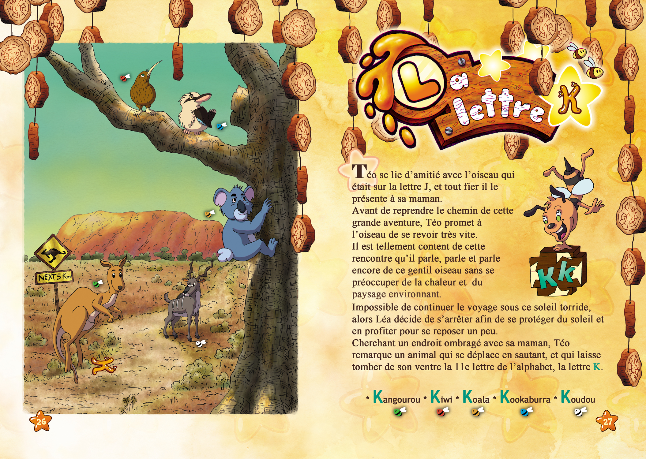 Nous personnages principaux Léa et Téo partent à l’aventure à travers le monde à la recherche des lettres de l’alphabet.