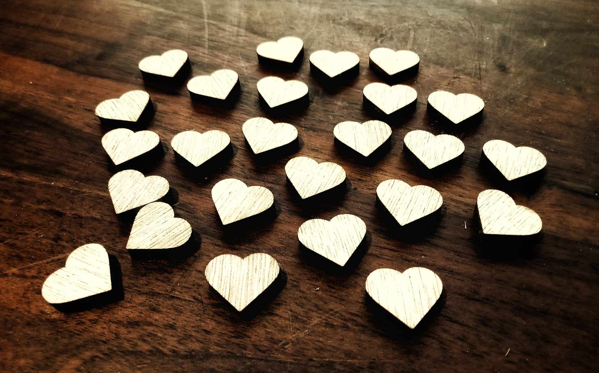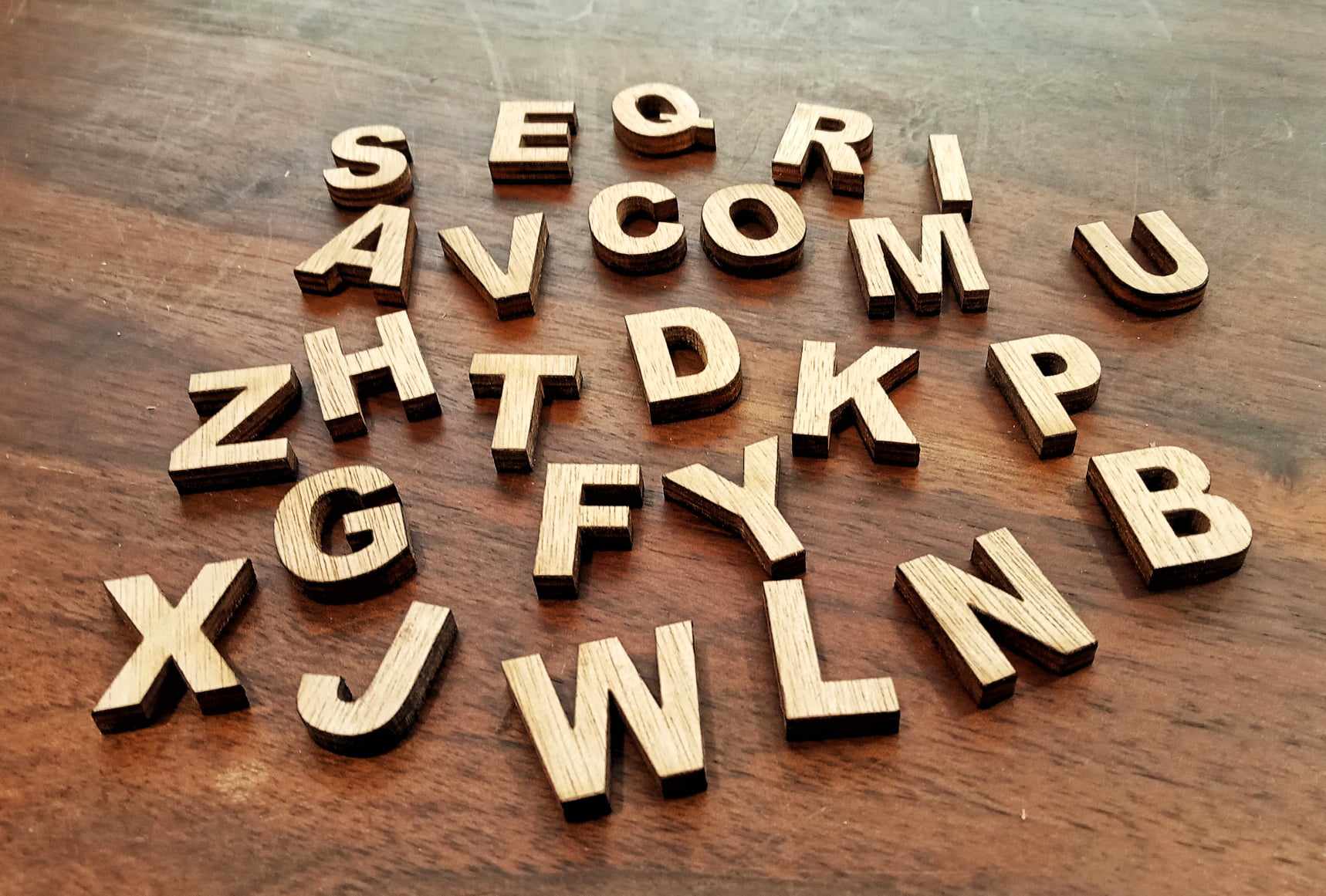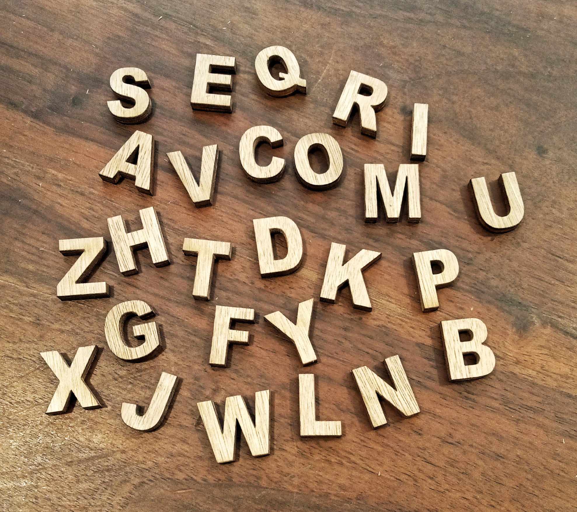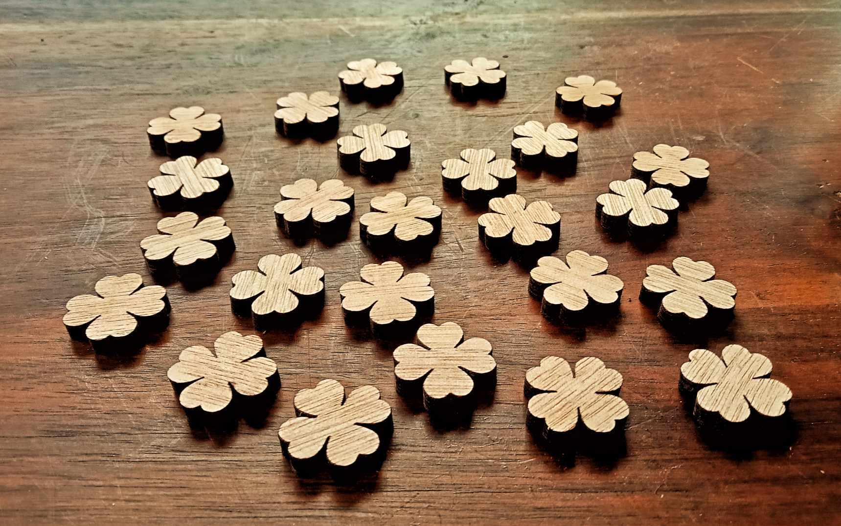 Lot de 25 pions en bois de 2 centimètres de diamètre avec des formes simples à choisir.