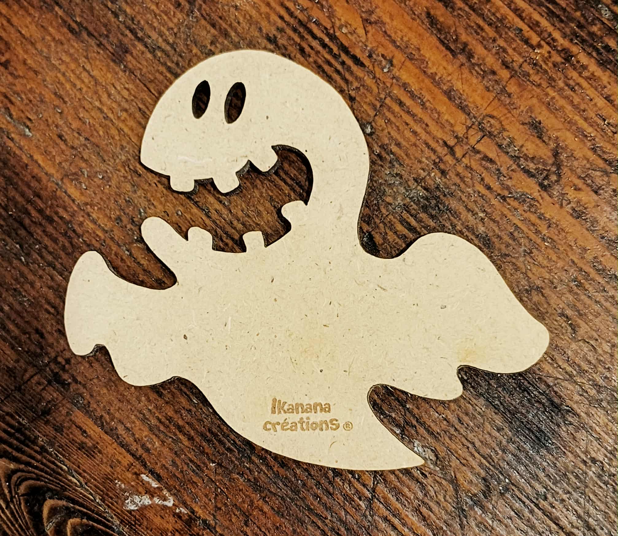 Support de loisirs créatifs avec la forme de fantome souriant en bois MDF.