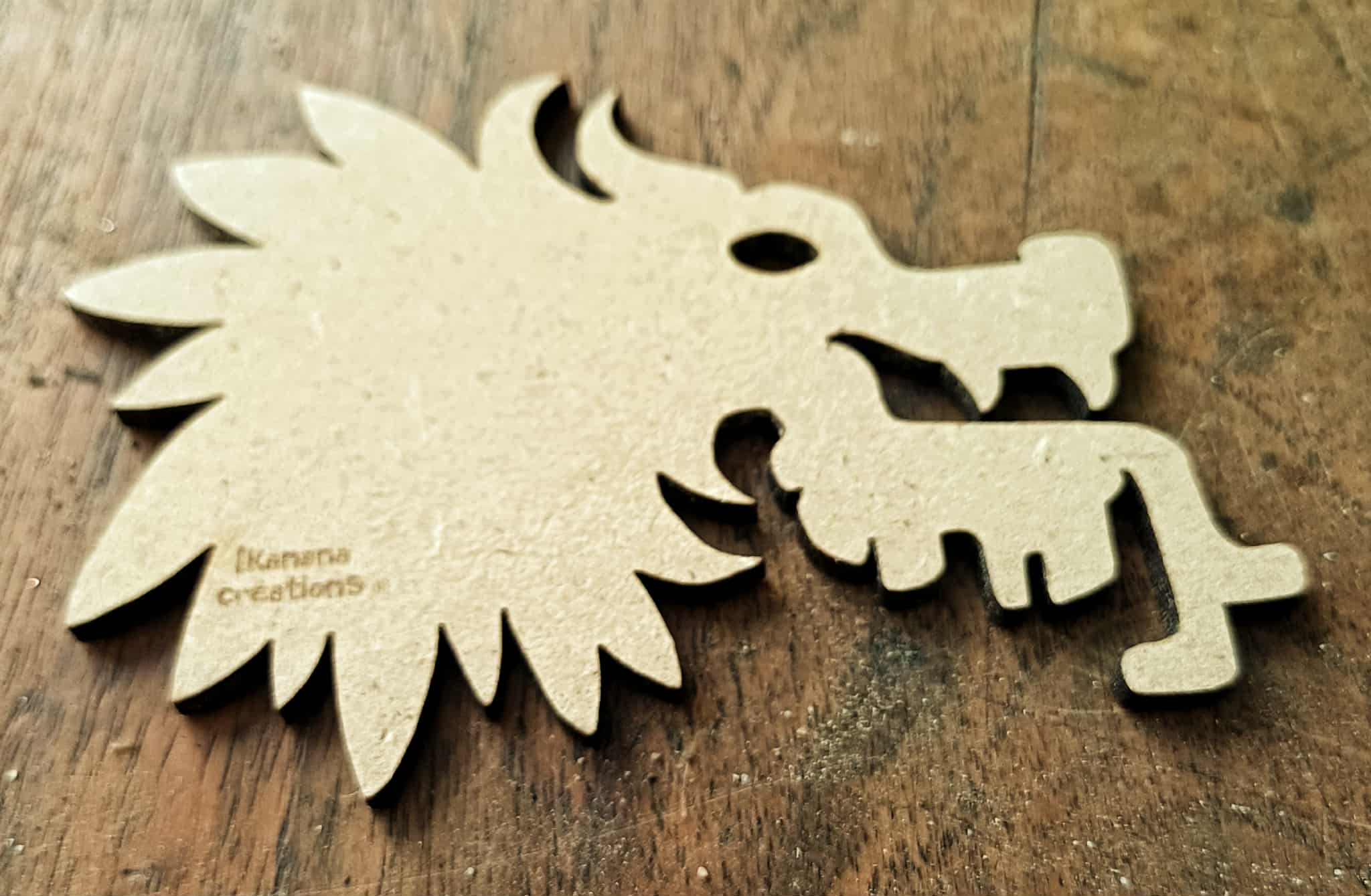 Support de loisirs créatifs avec la forme de tête de dragon maya en bois MDF.