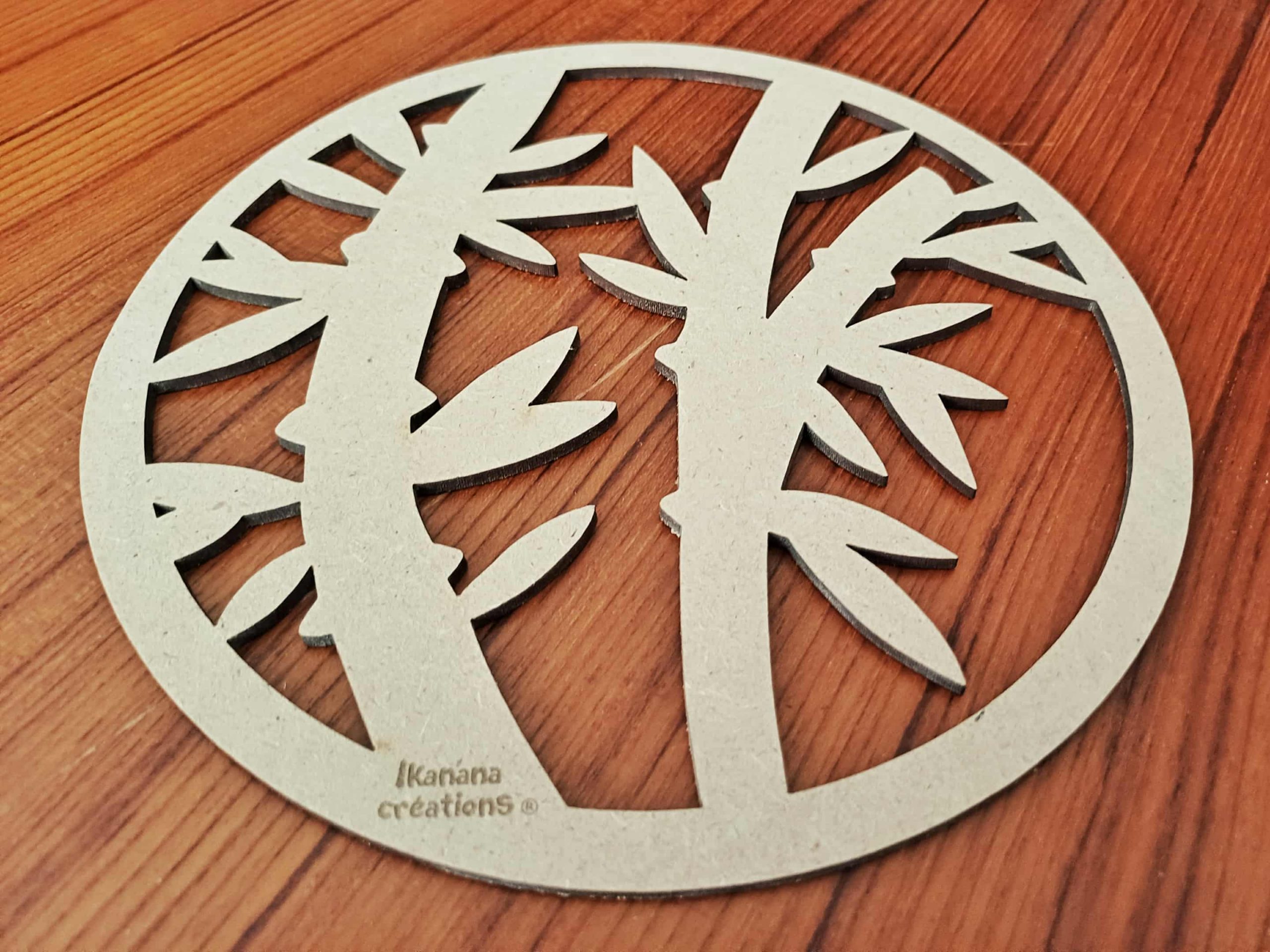 Support de loisirs créatifs avec la forme des bambous dans un cercle en bois MDF.