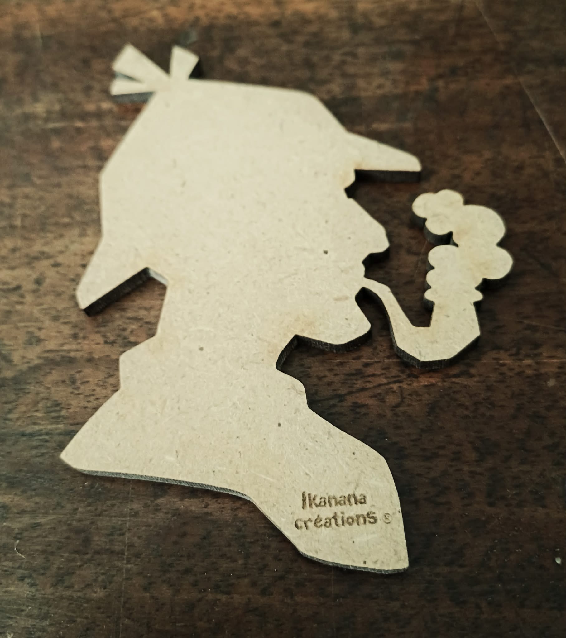 Support de loisirs créatifs avec la forme de portrait de Sherlock holmes en bois MDF.