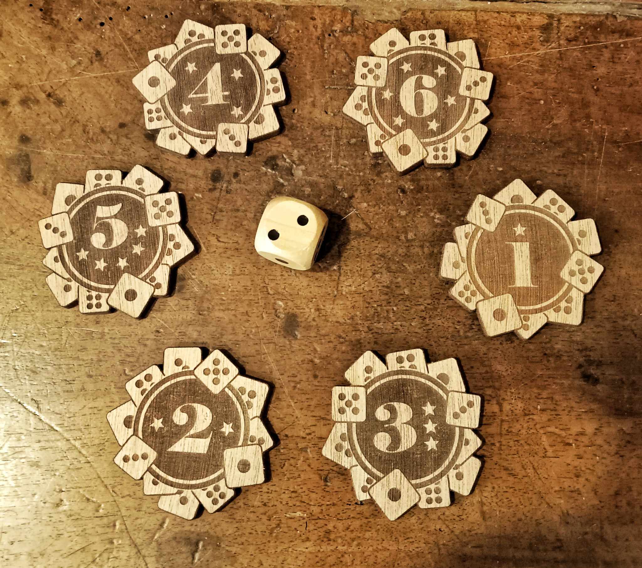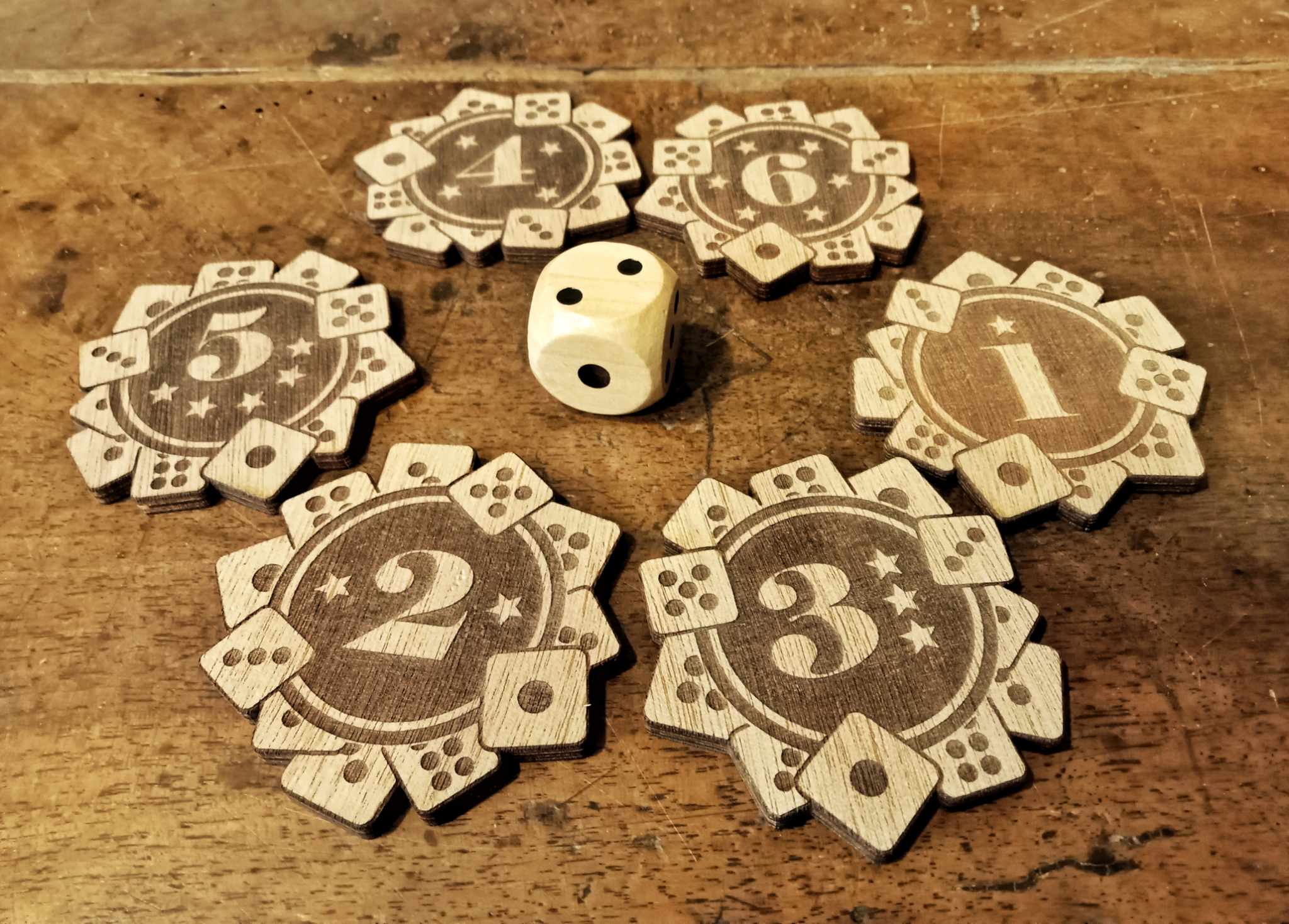 Le jeu comprend six jetons en bois de qualité et un dé en bois, pour une expérience de jeu agréable et durable.
